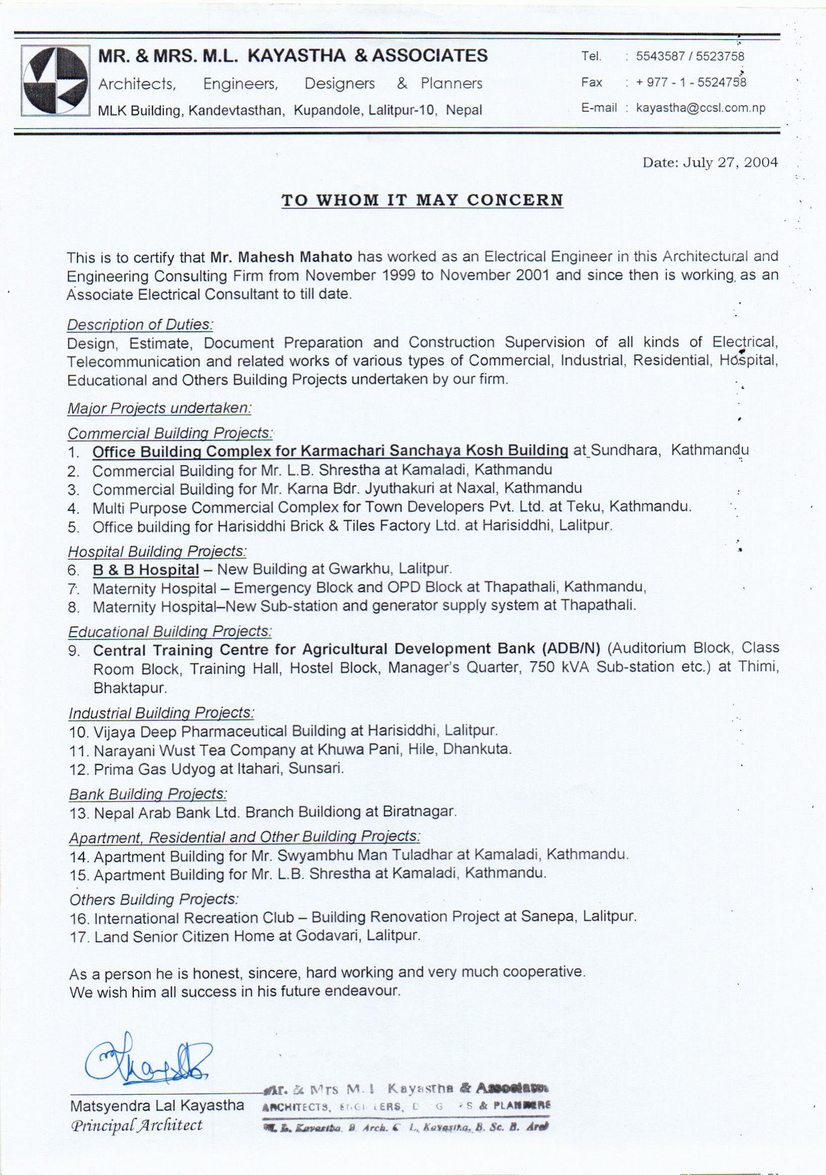 | 37 | Mr. and Mrs., M.L Kayasta & Associates |